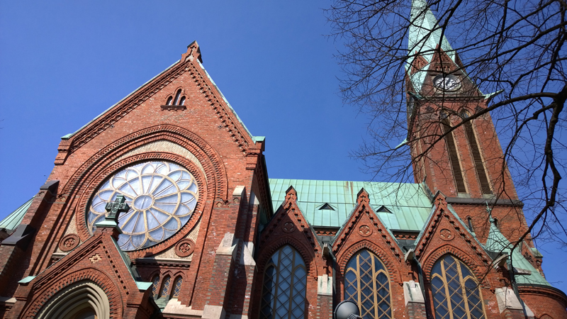 Kotkan kirkko,  valmistunut 1898. Torni 54 metriä korkea.  11 vuotta kestänyt kunnostustyö valmistui v. 1999